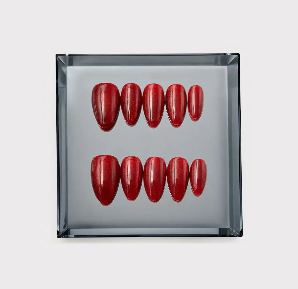 Inspiration: The classic "Red Nail Theory" elevated with a multidimensional shimmer. This deep, luscious crimson features a fine metallic grain that mimics the texture of crushed velvet. It is a sophisticated, high-drama set that is essential for holiday parties, date nights, or a powerful everyday statement.