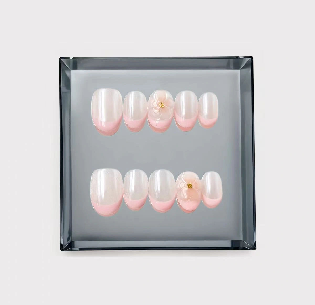 Pink Blossom Pearly Frenchie Short Press On Nails